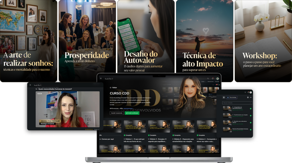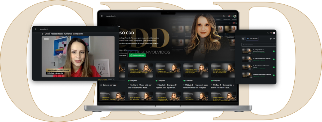 No CDD você tem aulas e exercícios de autodesenvolvimento e técnicas de alto impacto para tratar questões do seu emocional (como traumas, inseguranças…) que estão te atrapalhando de ser mais confiante e prosperar no amor, no profissional e no financeiro